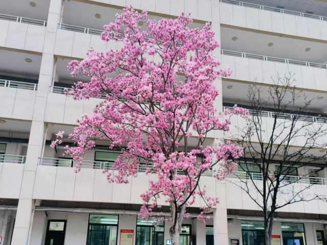 随后,社团老师化身为导游,带领社员们踏上了一段充满诗意的校园探索之旅。从行政楼出发,大家被鸟语花香所环绕(be enveloped in the chorus of birdsong and the fragrance of flowers),四维广场上绿草如茵,鸟儿在其中欢快地跳跃,仿佛在为春天的到来奏响乐章(as if playing a symphony to welcome the arrival of spring)。接着,大家依次漫步至芳华楼与自华楼,粉嫩的玉兰花(the pink magnolia flowers)在枝头悄然绽放(quietly bloom on the branches),高耸的树木虽未披上新绿(though not yet adorned with new leaves),却以挺拔的姿态迎接春天的到来,鸟窝点缀其间(be dotted with bird nests),仿佛是大自然精心布置的装饰。穿过一片郁郁葱葱的竹林(a dense bamboo grove),几只慵懒的猫咪悠然自得地穿梭其中(meander leisurely),为这片宁静的角落增添了几分灵动与趣味。