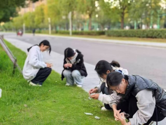 室外环节,社团老师带领学生在校园收集落叶,制作落叶标本,亲身体会秋天之美,校园之美,并尝试用所学英语描绘校园秋景。活动最后,学生们一起合影留念,依依不舍的结束了本次社团活动。