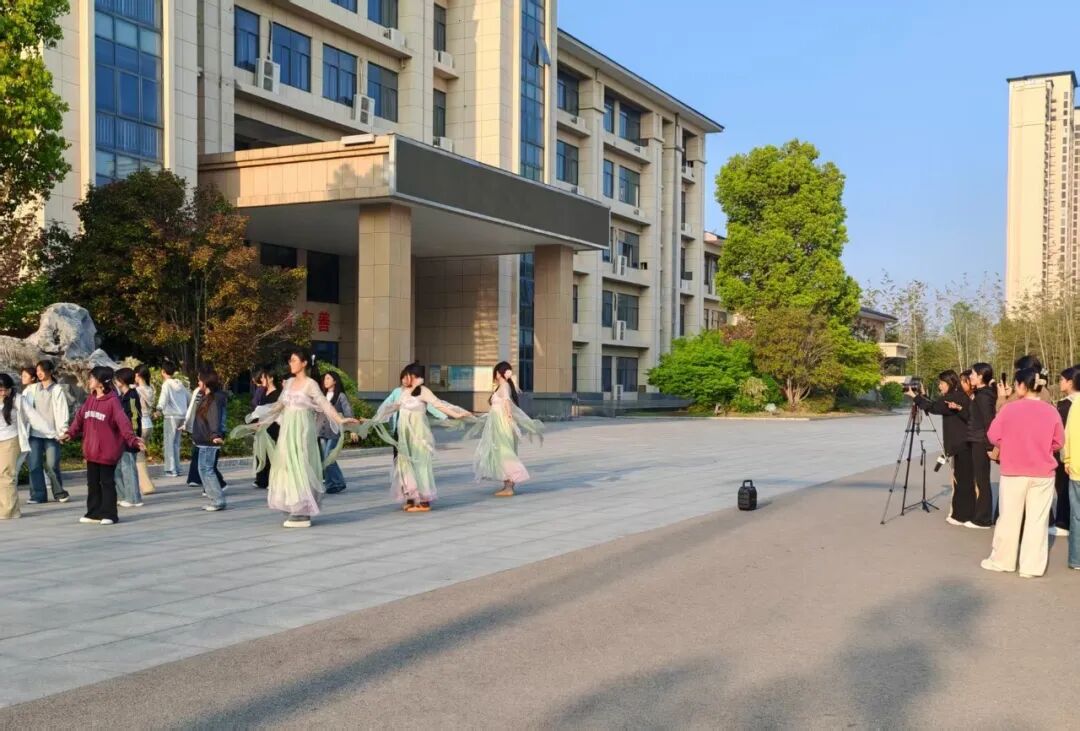 为传承中华优秀传统文化,丰富校园文化生活,4月1日下午,颍上二中校园广播记者社与国风雅韵形体社携手,以“清明时节”为主题,开展了一场集国风舞蹈演绎、校园采访记录于一体的特色文化活动,用镜头与话筒定格春日校园里的诗意与传承。