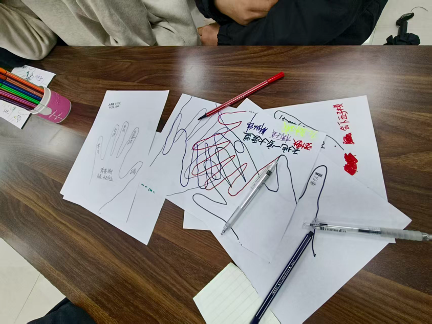 为让同学们更好地表达内心感受,课程特别设置了手绘创作环节。同学们拿起色彩丰富的马克笔,在画纸上尽情涂鸦创作,将心底的情绪、对生活的期许都通过画笔展现出来。鲜艳的色彩、灵动的图案,既是心情的表达,也是压力的释放,现场氛围温馨又治愈。