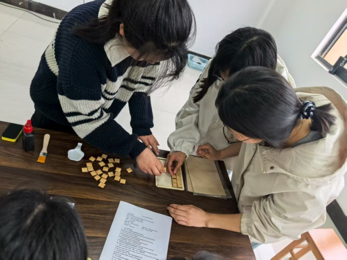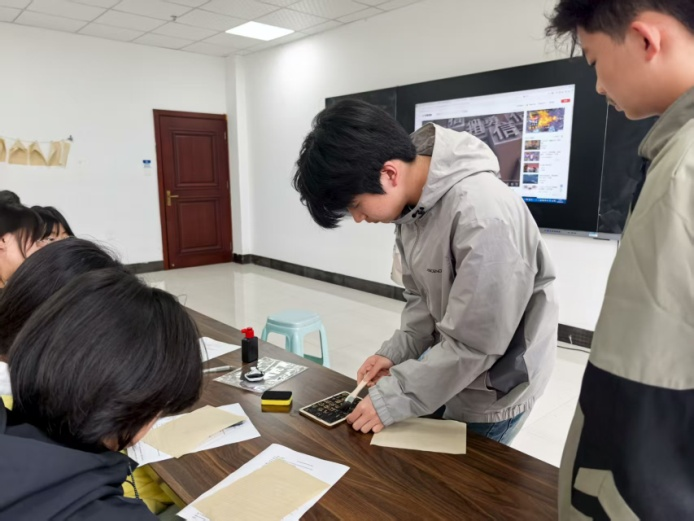 为了增强体验感,指导老师带领社团成员亲手体验了活字印刷术的完整流程。从拣字排版的耐心细致,到刷墨印纸的专注严谨,同学们在方寸之间体验着古人的智慧,展现出极高的参与热情。穿越时空后,老师又带领学生迅速切换视角,了解令全球惊艳的现代“新四大发明”:高铁、移动支付、共享单车与网购。这些创新成果不仅极大提升了中国人民的生活品质,更向世界展示了中国在现代科技与创新领域的卓越实力。